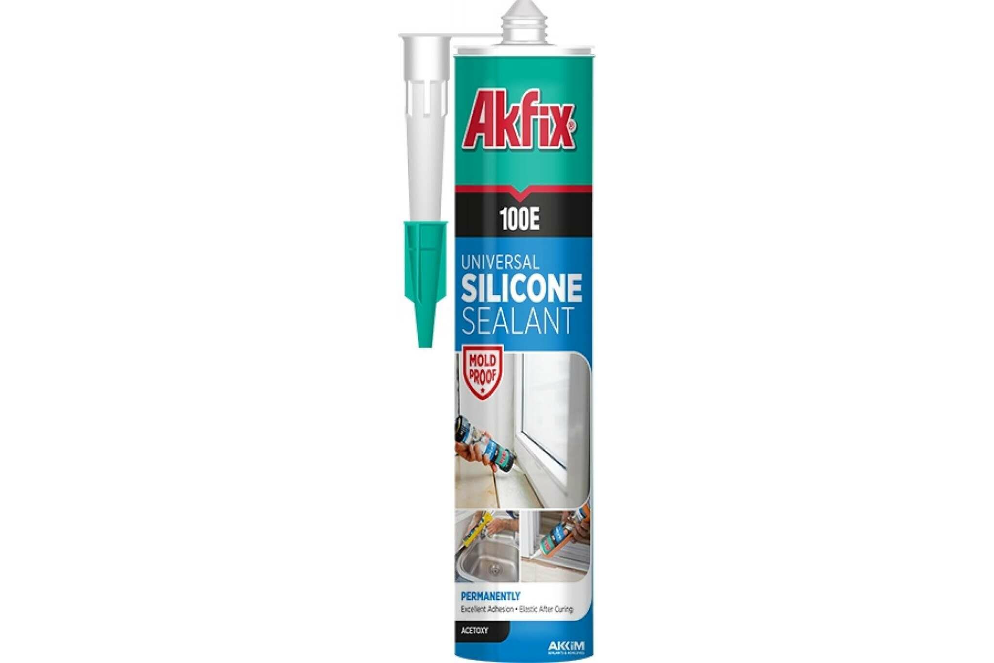 100E Универсальный силиконовый герметик Akfix, 280 мл, белый 509 ₽