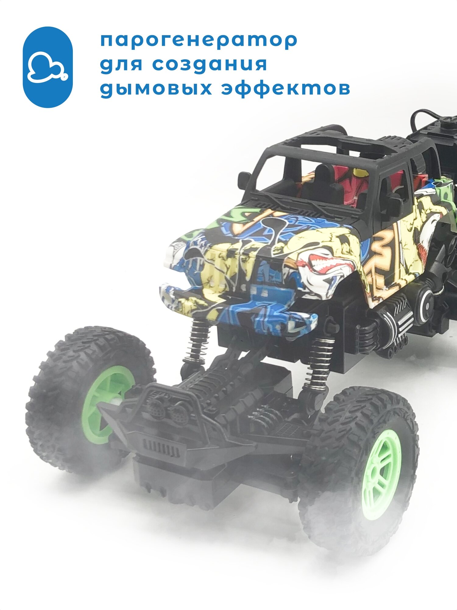 | Комплектация | Машинка, пульт дистанционного управления, 3.7V литиевая батарейка, USB-провод для зарядки, парогенератор |