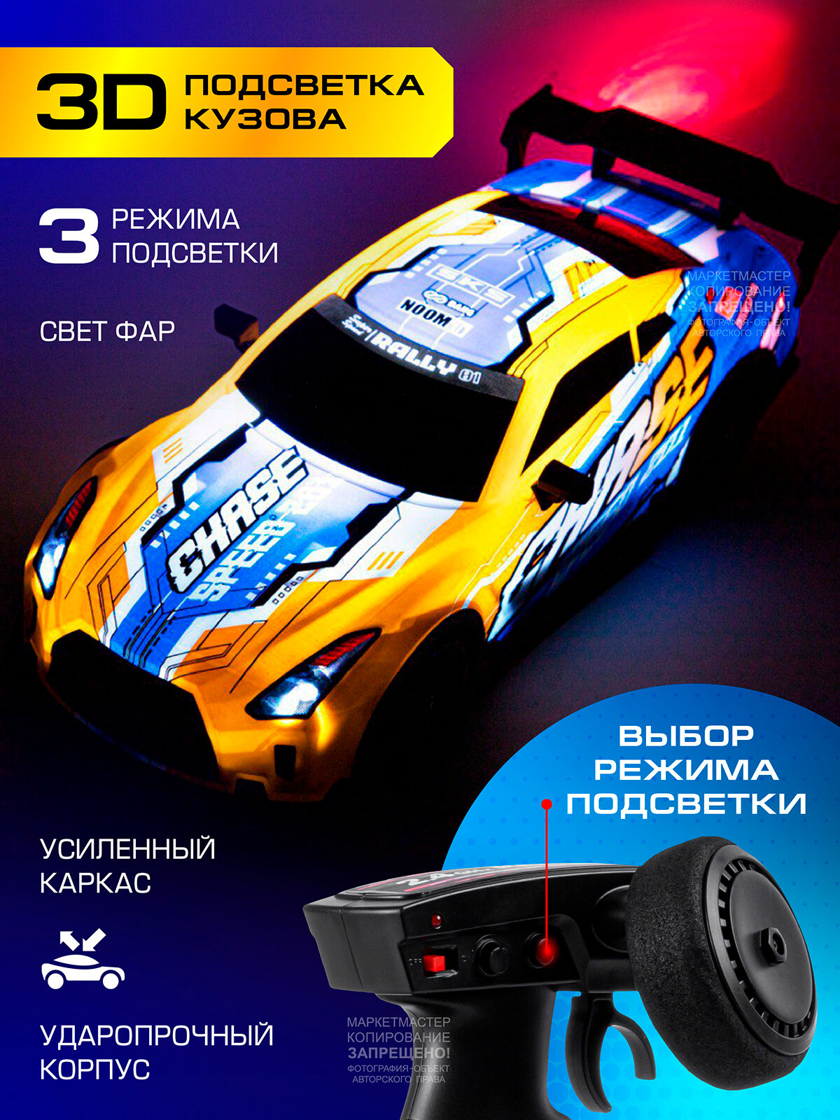 Радиоуправляемая машинка для дрифта с 3D подсветкой корпуса и пульта, ударопрочный пластик, 4 запасных колеса, 4WD, свет, JB0404897 информация: