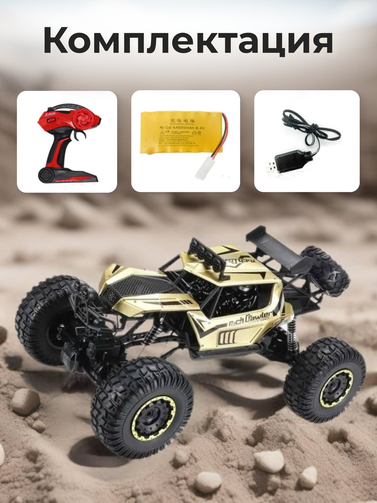 | Комплектация | автомобиль, пульт дистанционного управления, аккумулятор-1 шт., 1 зарядный кабель. |