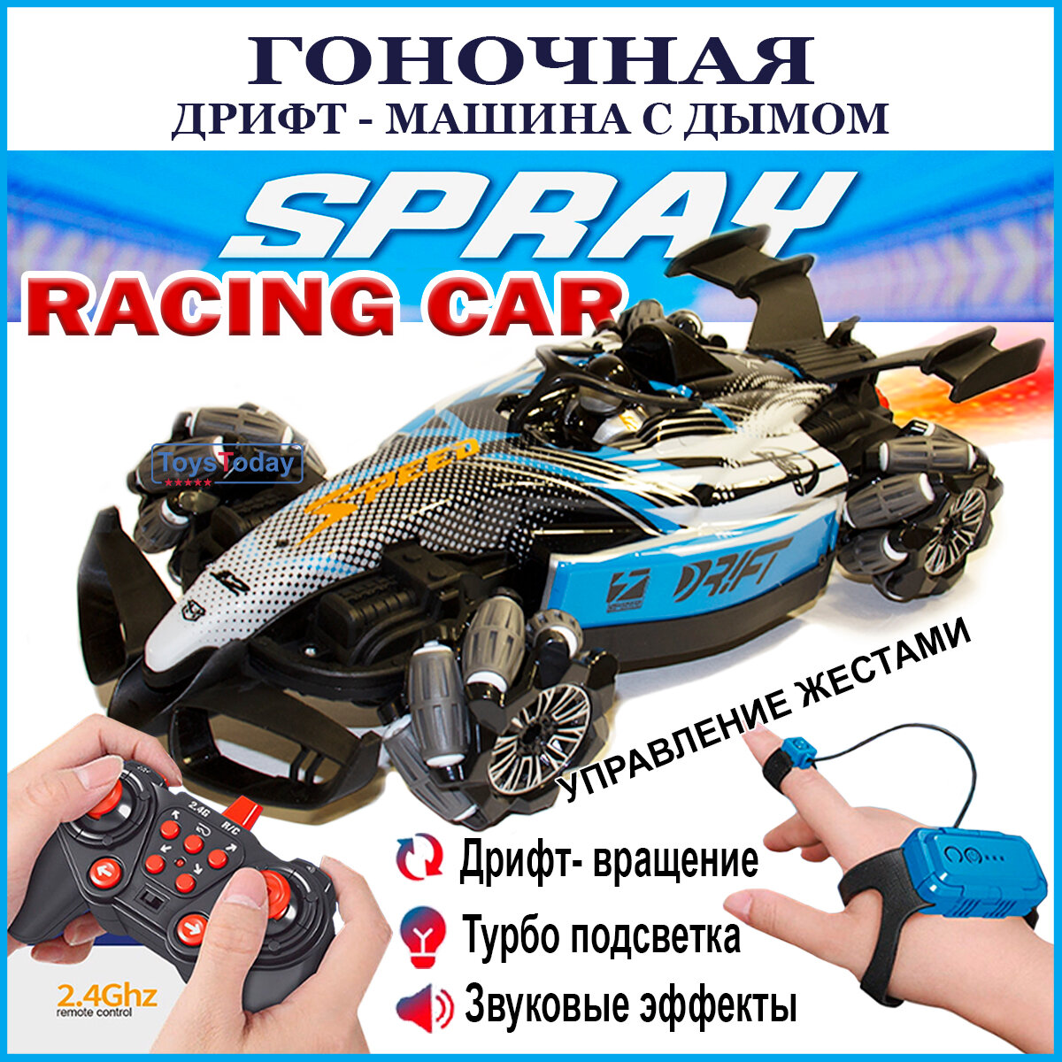 Машинка на пульте управления. С подсветкой "дыма". Детская гоночная машина на радиоуправлении. Управление жестами одной рукой. Spray Car Цвет: голубой информация: