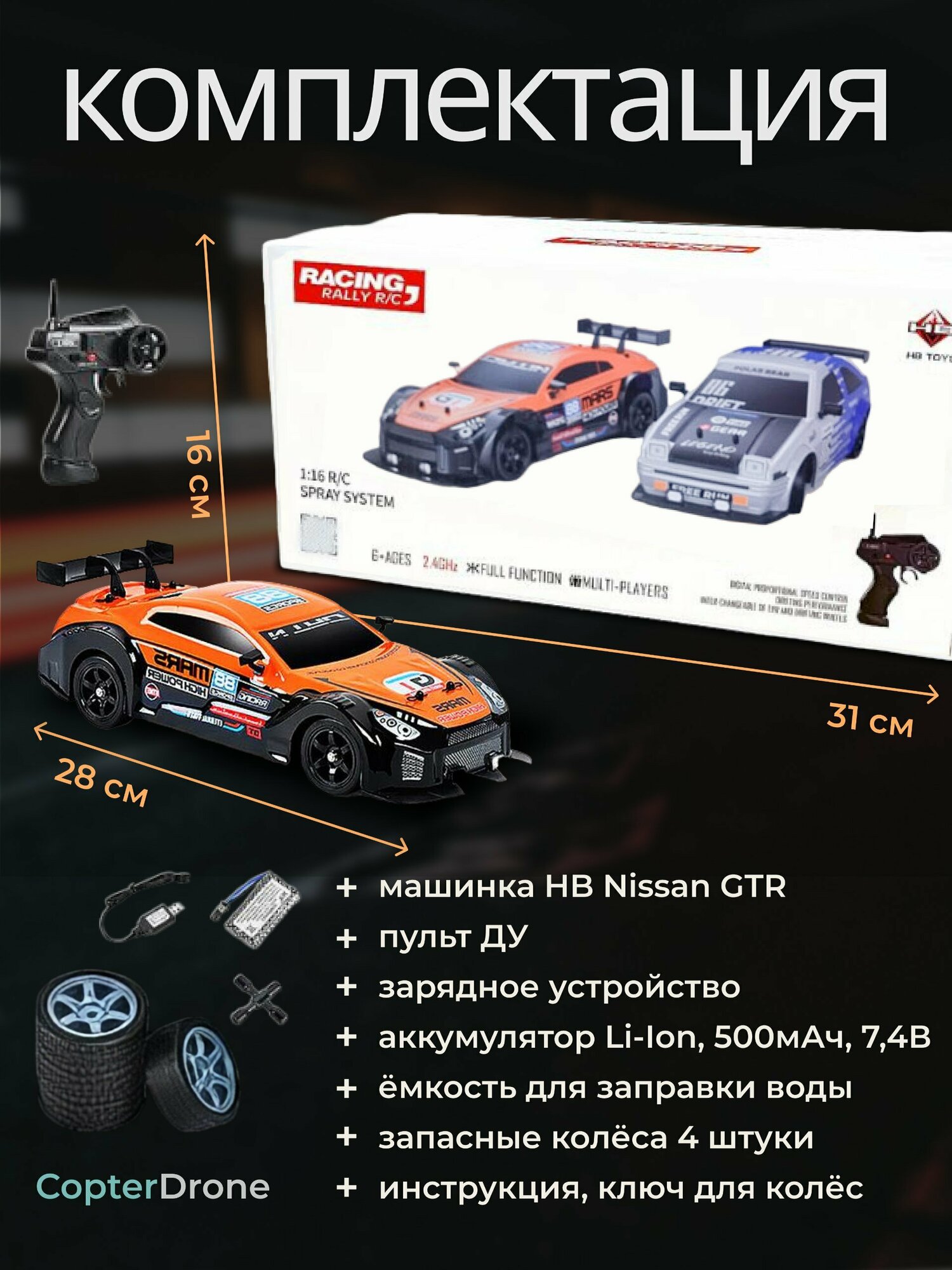10 цен на Радиоуправляемая машина для дрифта HB Nissan GTR (4WD, свет, пар, акб, 1:16) - SC16A06-1