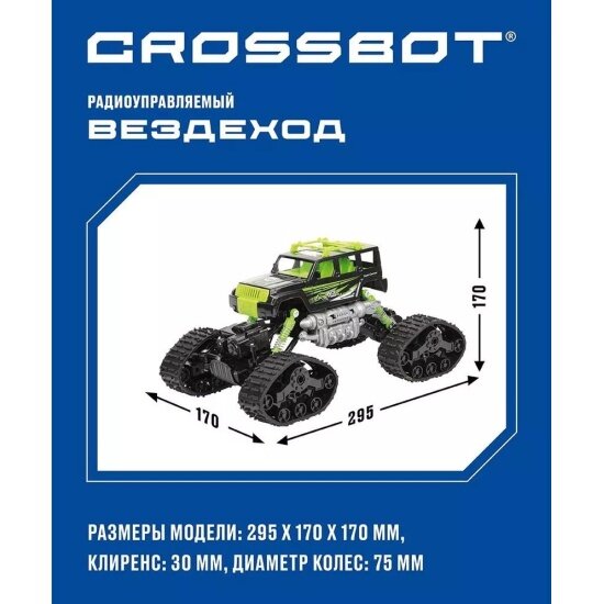 Краулер на радиоуправлении Crossbot 870591 черно-зеленый информация: