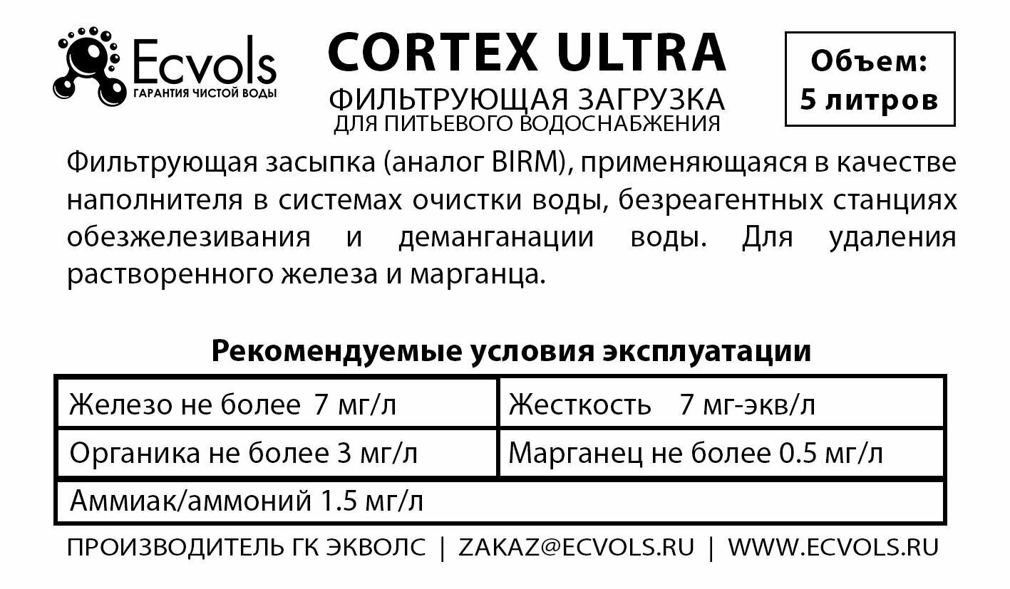 Фильтрующий материал Cortex Ultra удаление железа и марганца, 5 литров
