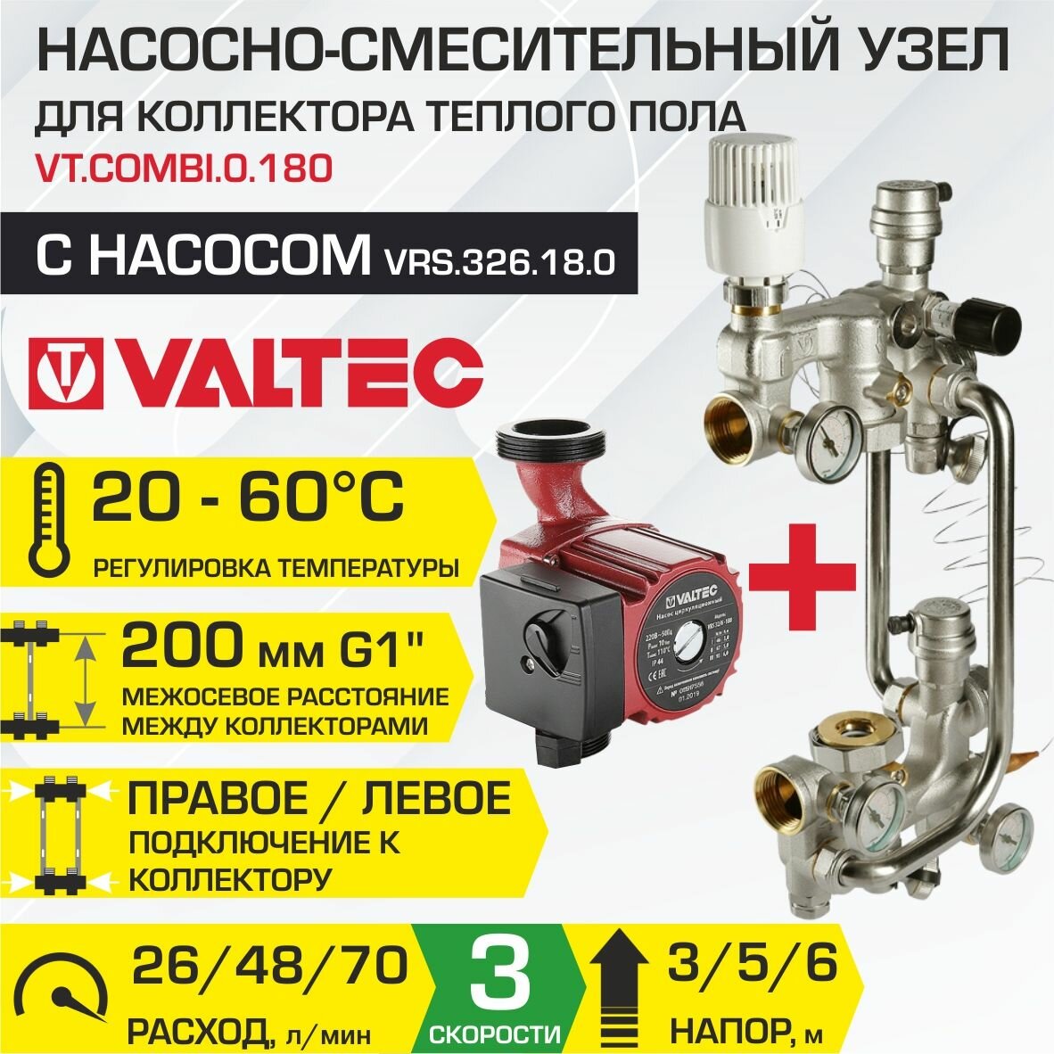 10 цен на Насосно-смесительный узел VALTEC COMBI с насосом 32-6/180 мм межосевое расстояние 200 мм, G1" и термоголовкой, VT.COMBI.0.180 + VRS.326.18.0