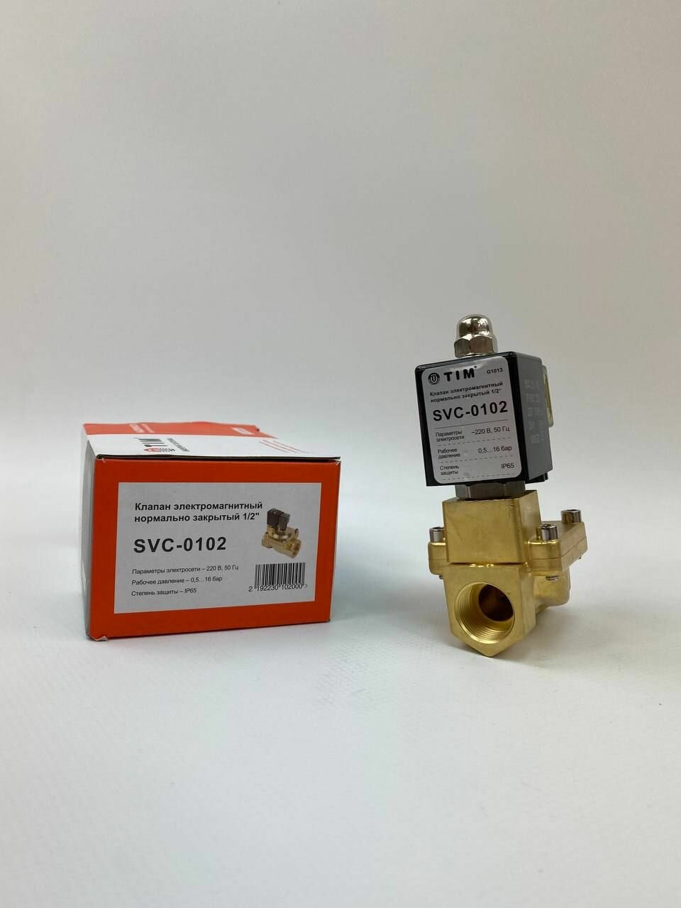 Клапан электромагнитный соленоидный нормально закрытый латунный 1/2"(ДУ15), 220В, TIM артикул SVC-0102 информация:
