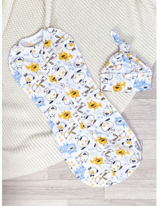 Комплект: кокон на молнии "Песики", 1шт. (0-3мес.) +шапочка