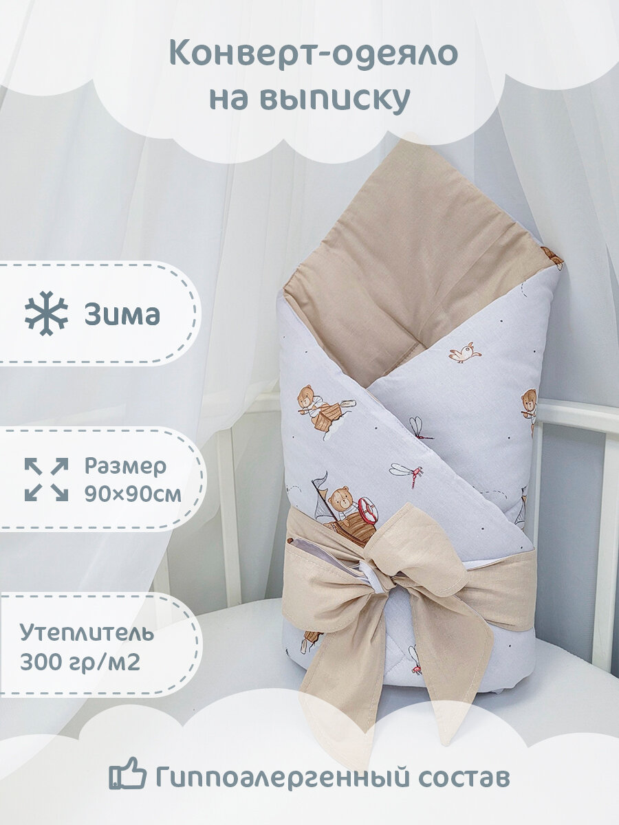 10 цен на Конверт-одеяло зимний "Мишка в лодке", 90х90см