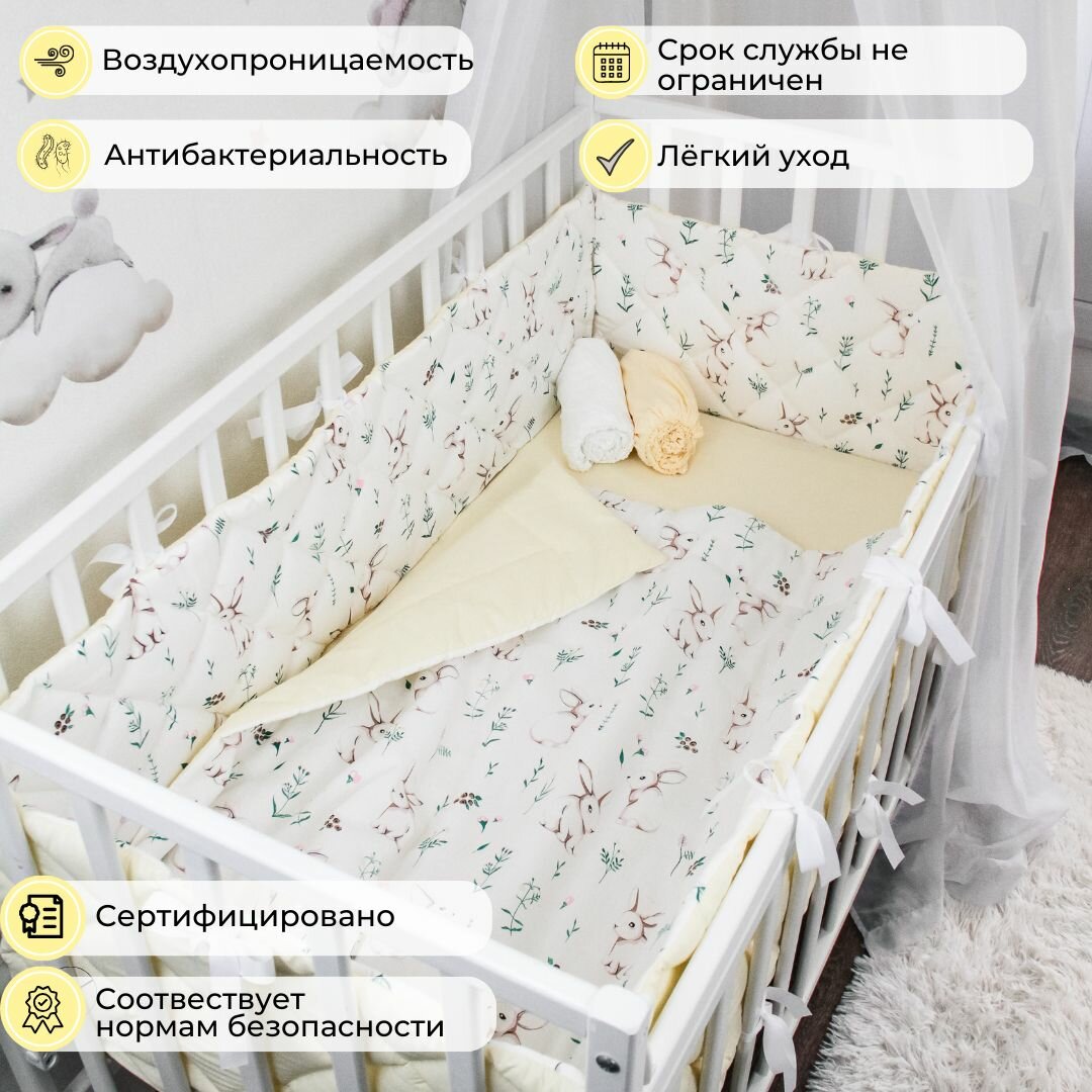 Конверт на выписку, одеяло для новорожденных в кроватку "Зайки" с миндалём информация: