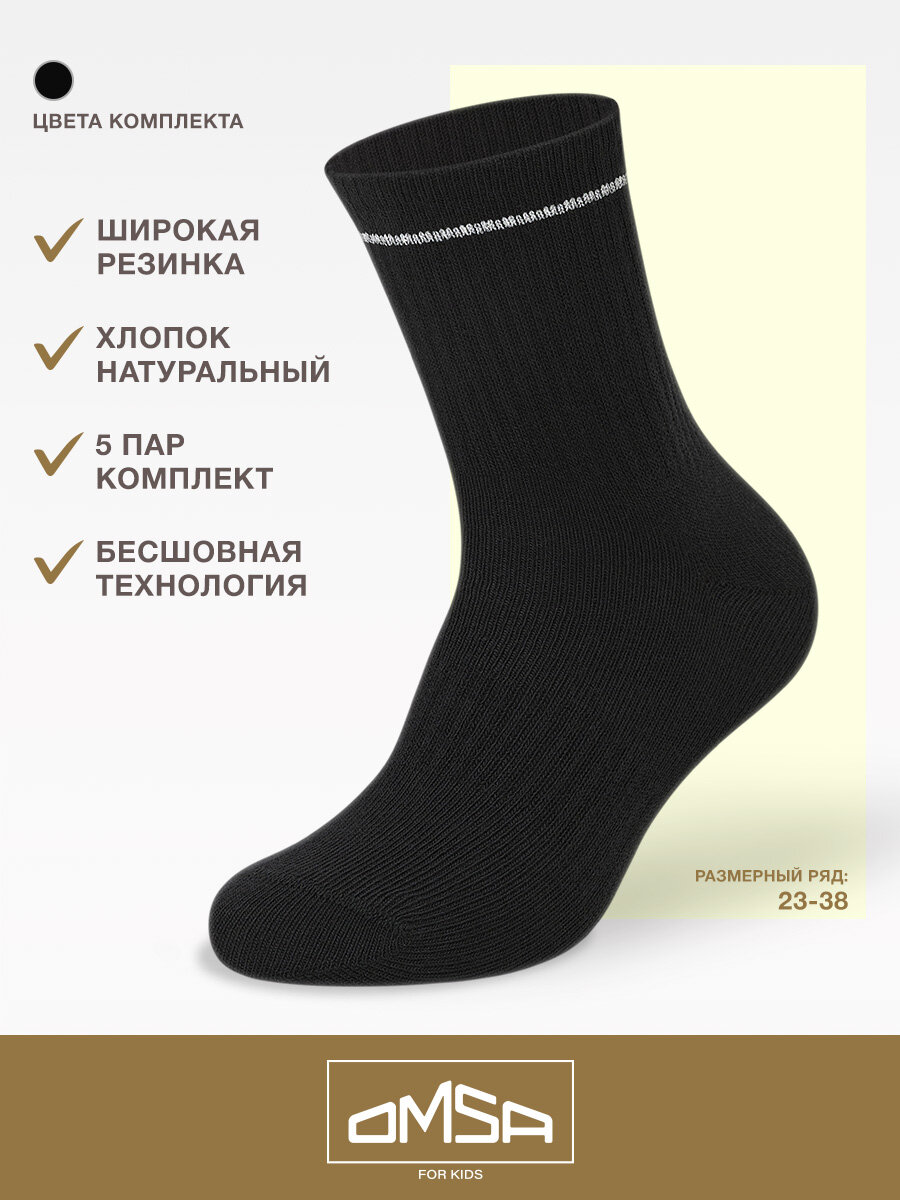 Носки детские OMSA Kids Calzino 21S05, набор 5 пар, для девочки, для мальчика, высокие, с принтом, хлопок, цвет Nero, размер 35-38 599 ₽
