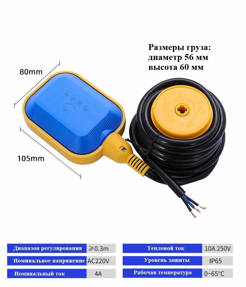 Поплавковый выключатель FS-1 2 м с грузом информация:
