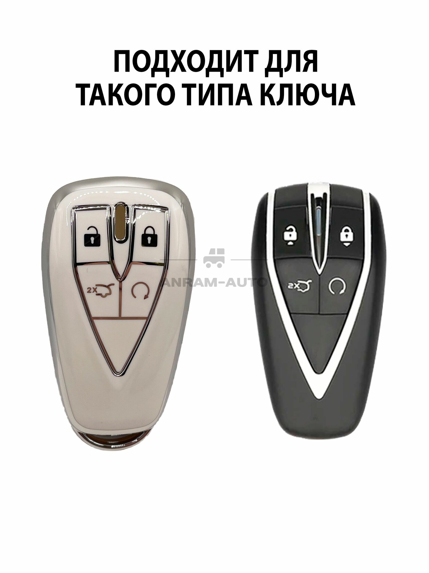Чехол для ключа Chery Tiggo 8 Pro, 8 Pro max, 7 Pro max, Arrizo 8, Exeed RX, Jaecoo J7 и Omoda C5 (белый)