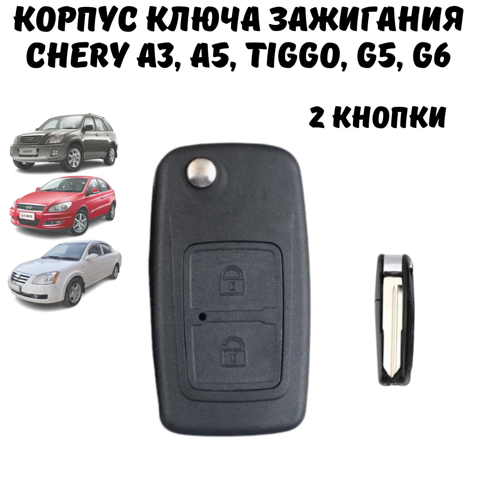 Корпус ключа зажигания Chery Tiggo, A3, A5, G5, G6, 2 кнопки информация: