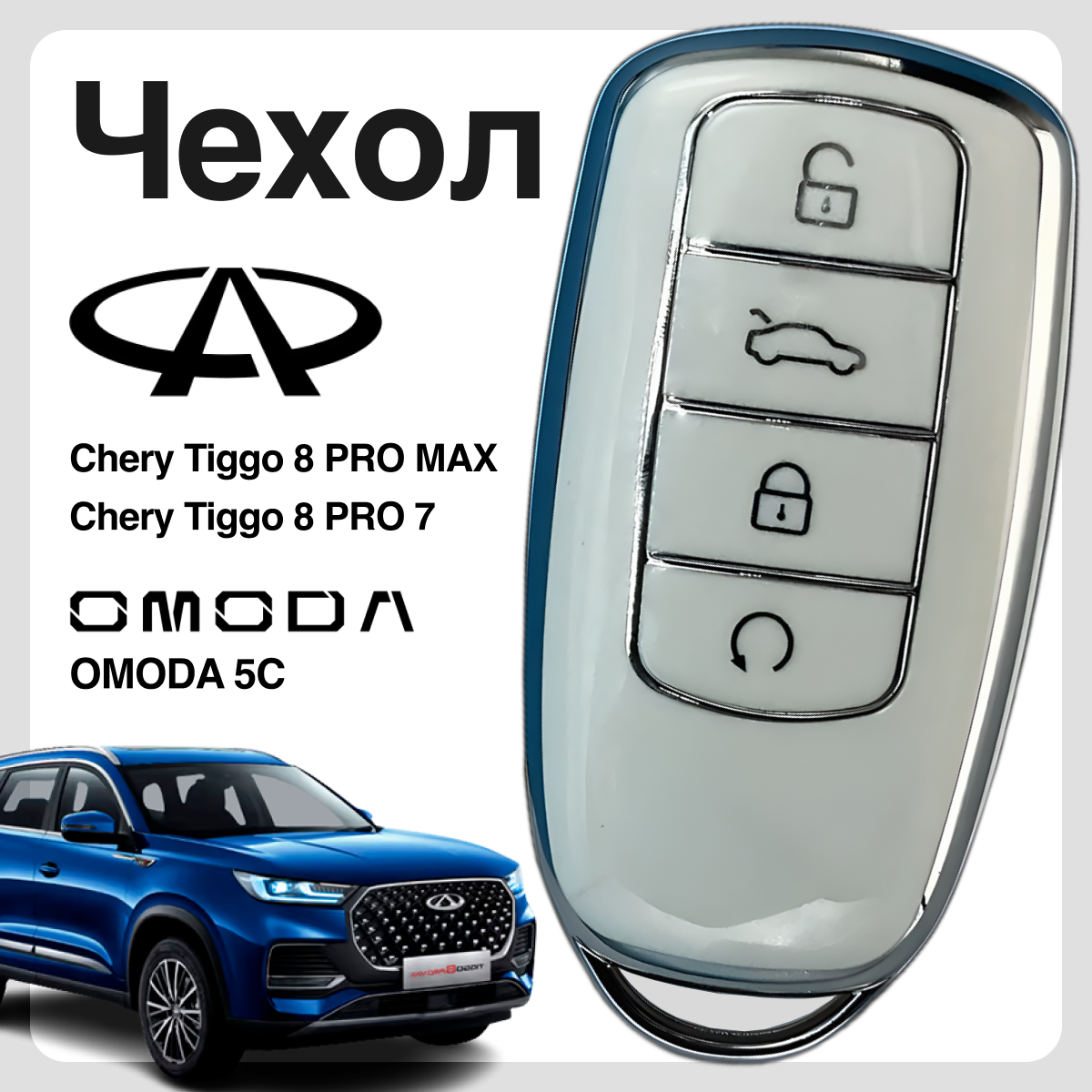 Чехол для ключа на Chery Tiggo 8 PRO, 8 PRO MAX, 7 PRO, OMODA 5C ( белый ) информация: