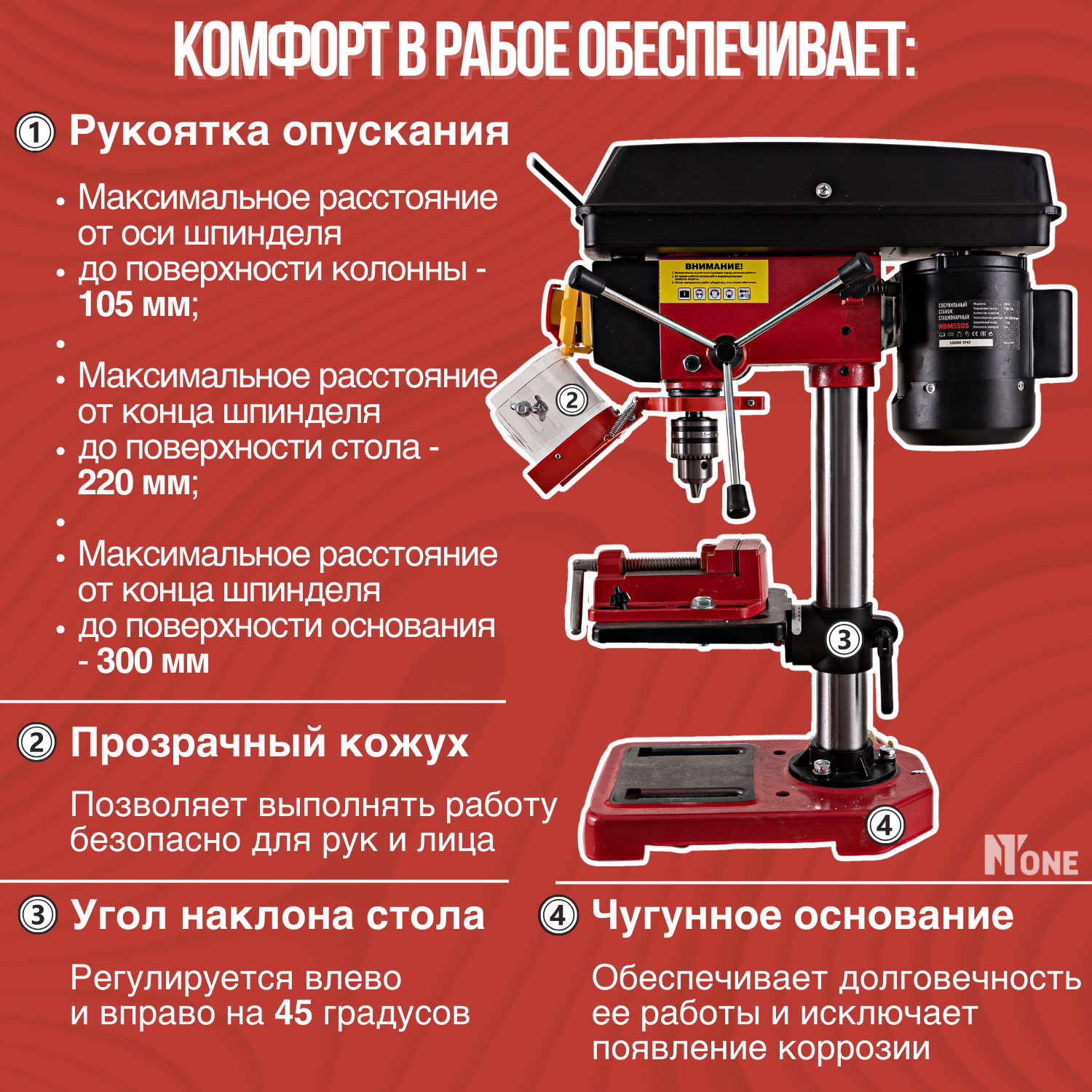10 цен на Сверлильный станок стационарный NUMBER ONE NBM 550S (550Вт,5 скоростей,13мм,580-2650об/мин,16кг)+тиски,№1