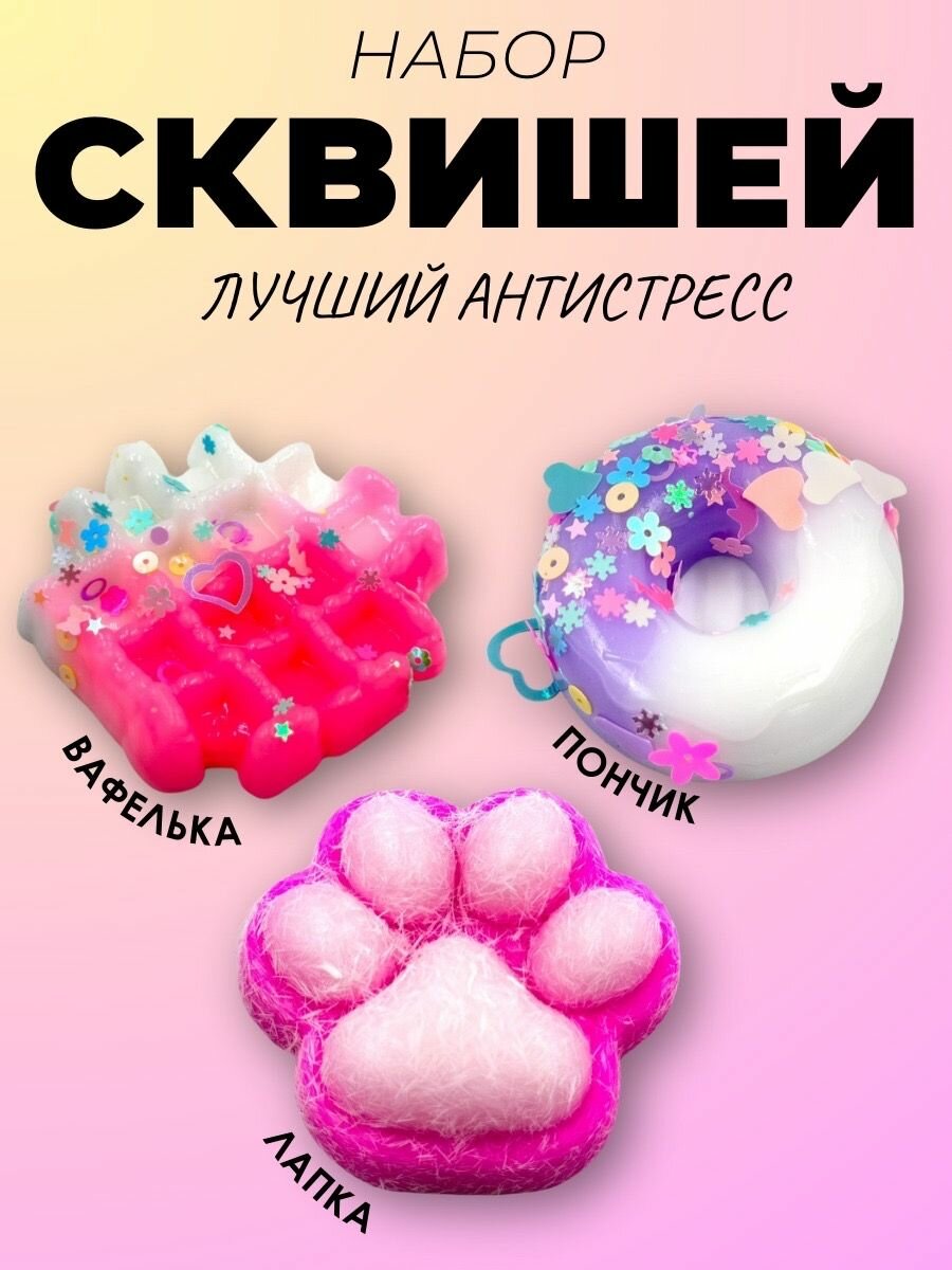 10 цен на Набор 3 шт Кошачья лапка пончик вафелька Антистресс сквиш