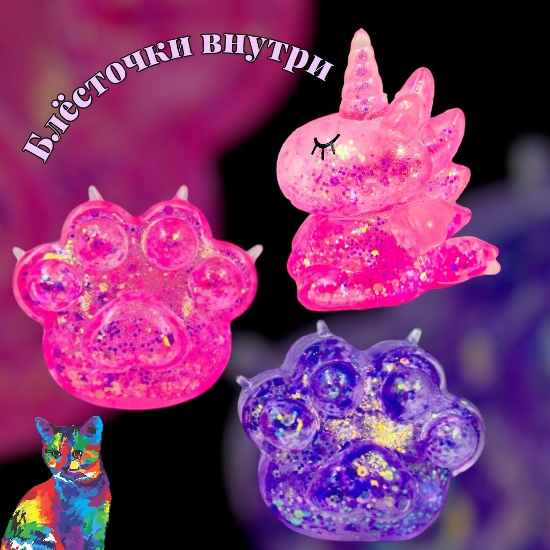 10 цен на Набор 3 Кошачьи лапки Антистресс сквиш мягкая и Единорожка