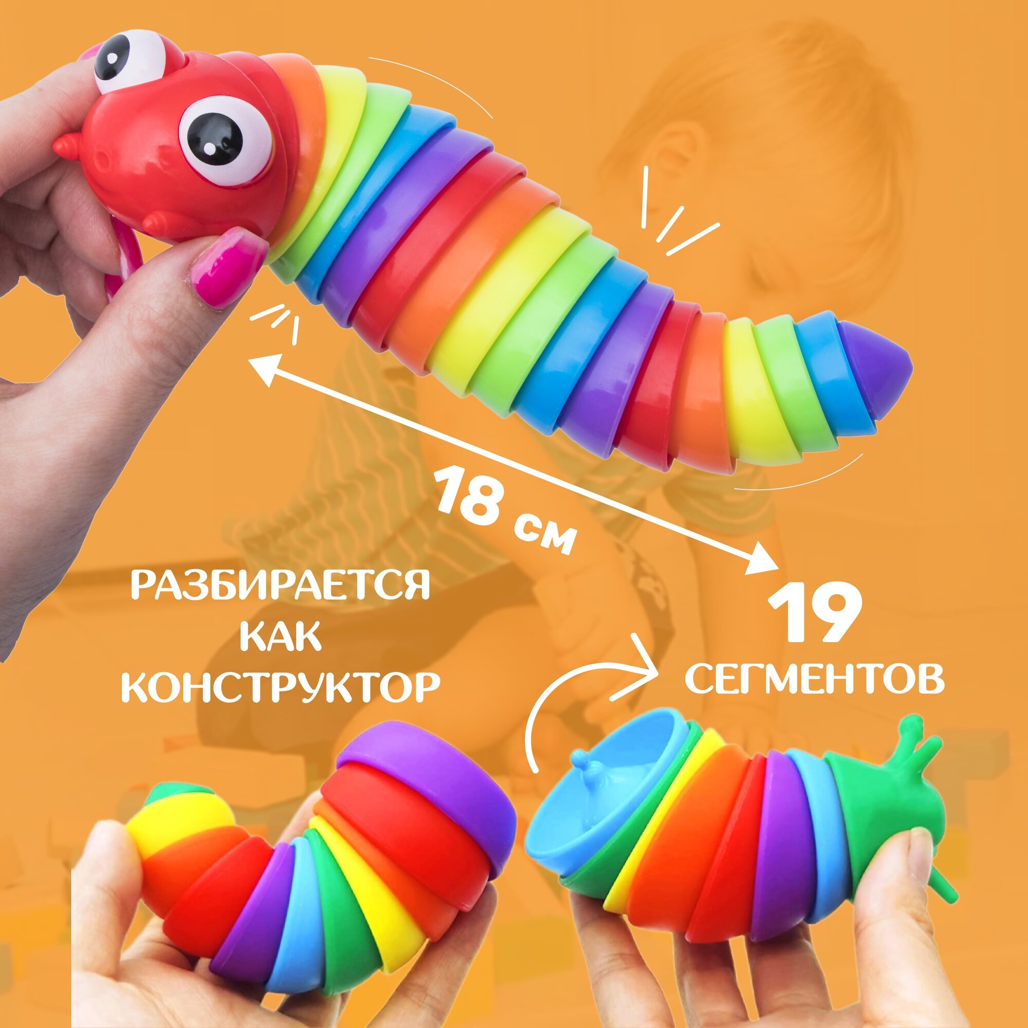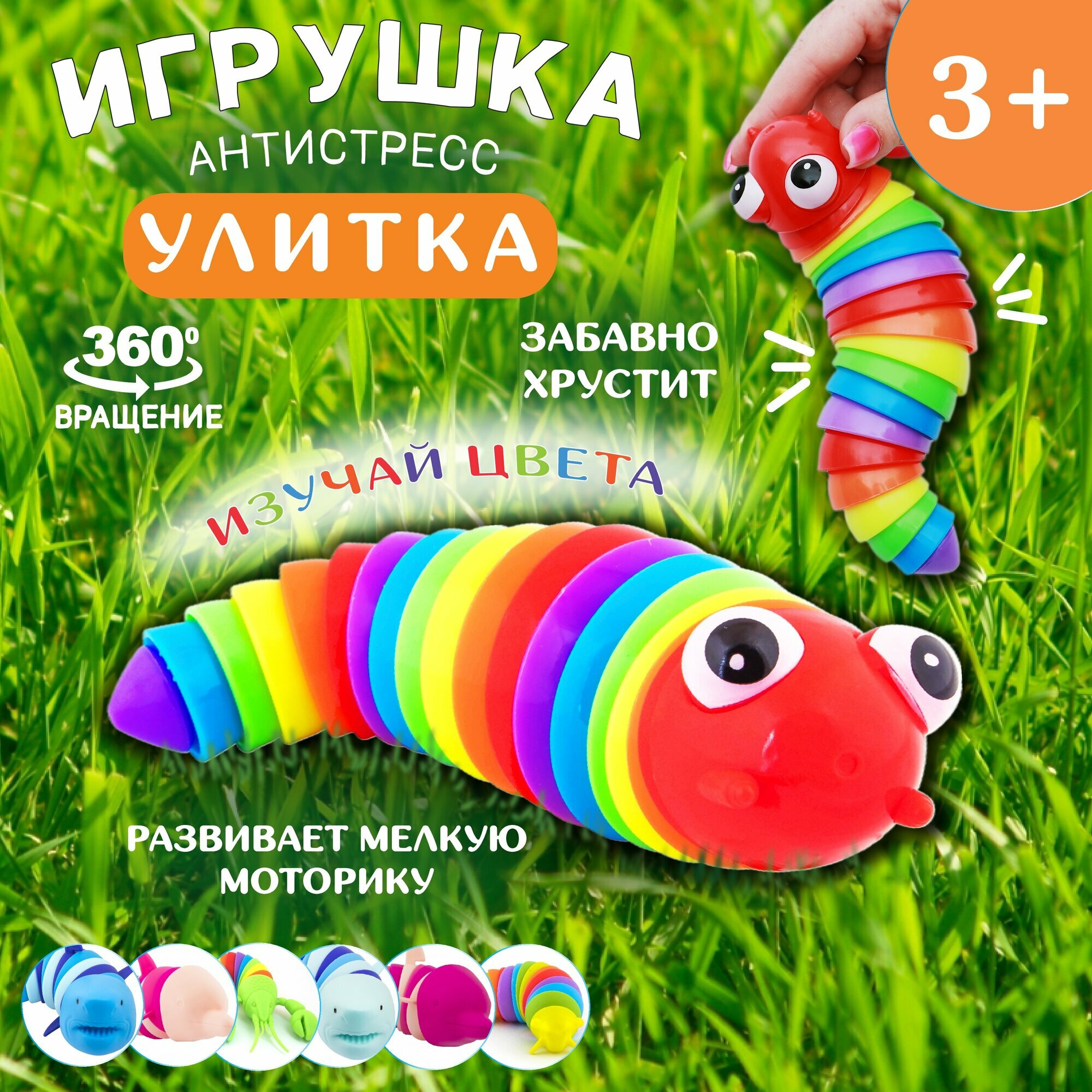 10 цен на Игрушка антистресс Погремушка Трещалка Гусеница / Улитка N 2 радужная для мелкой моторики Эврика / хрустит, со звуком Слизень / подарок подарок 23 февраля, 8 марта, играть в песке, воде