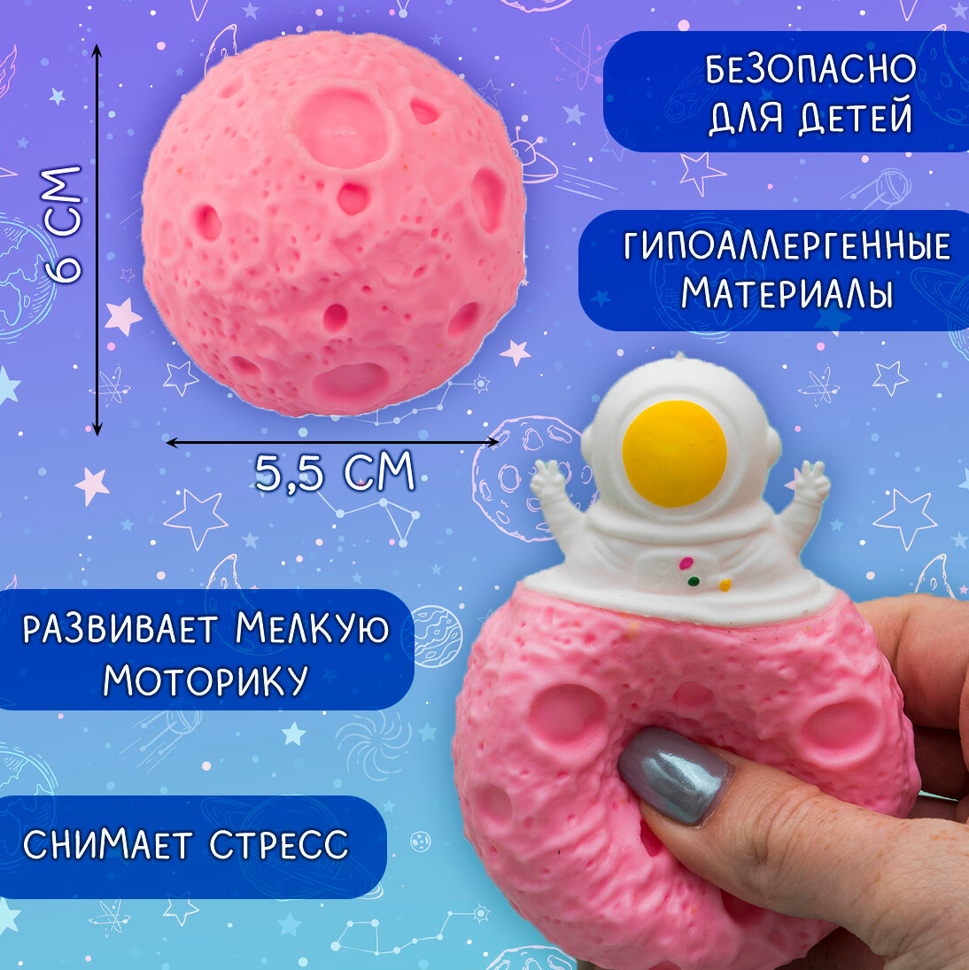 Игрушка антистресс мялка Фуфлик Космонавт Планета розовая с космонавтом, сквиш Эврика подарок девочке, мальчику подарок 23 февраля, 8 марта Космос 12 апреля День космонавтики информация: