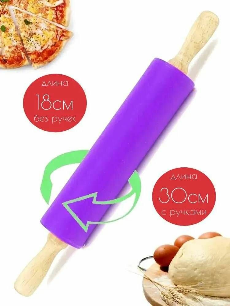 Скалка силиконовая с деревянными ручками, 18 см., сиреневый информация: