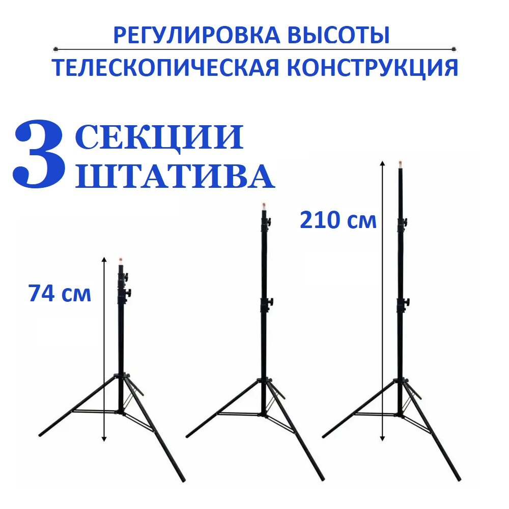 Универсальный металлический штатив трипод. Длина: 74-210 см. Металлический, телескопический. информация: