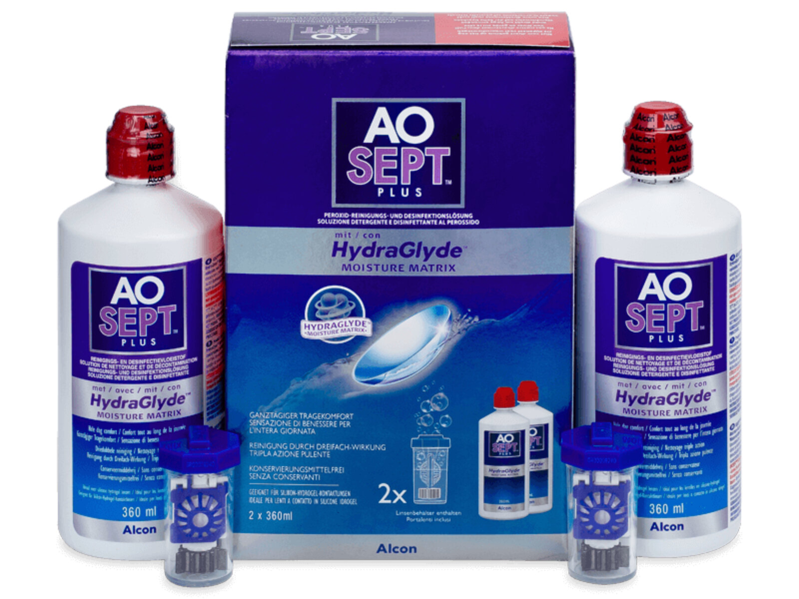 AOSEPT PLUS HYDRAGLYDE пероксидная система (2x360 ML + 2 контейнера) для ухода за контактными линзами информация: