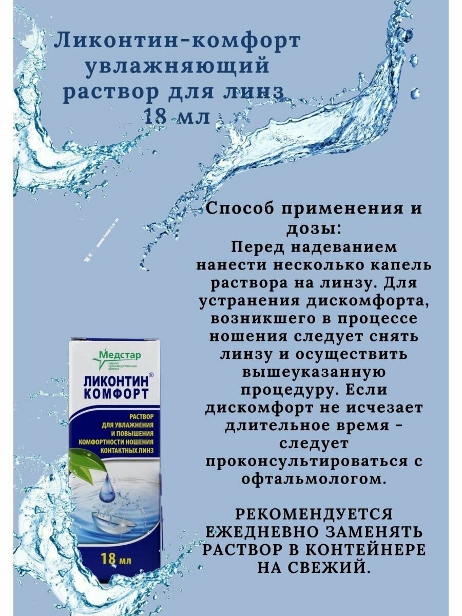 Раствор для комфортного ношения линз Ликонтин Комфорт 18мл информация: