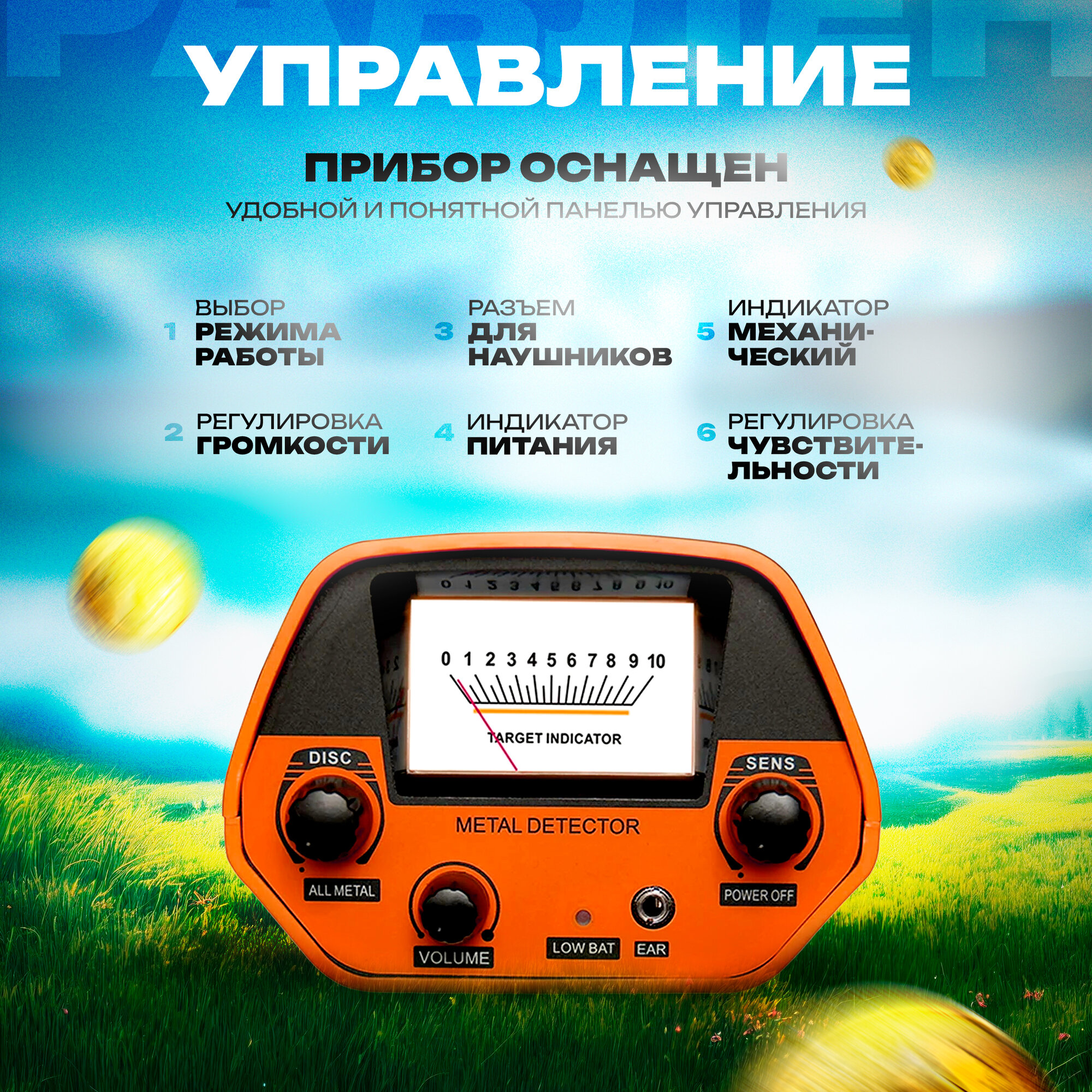 Металлоискатель ручной подводный грунтовой для поиска чермета металлолома, монет, золота, серебра, частота 6 кГц, VLF информация: