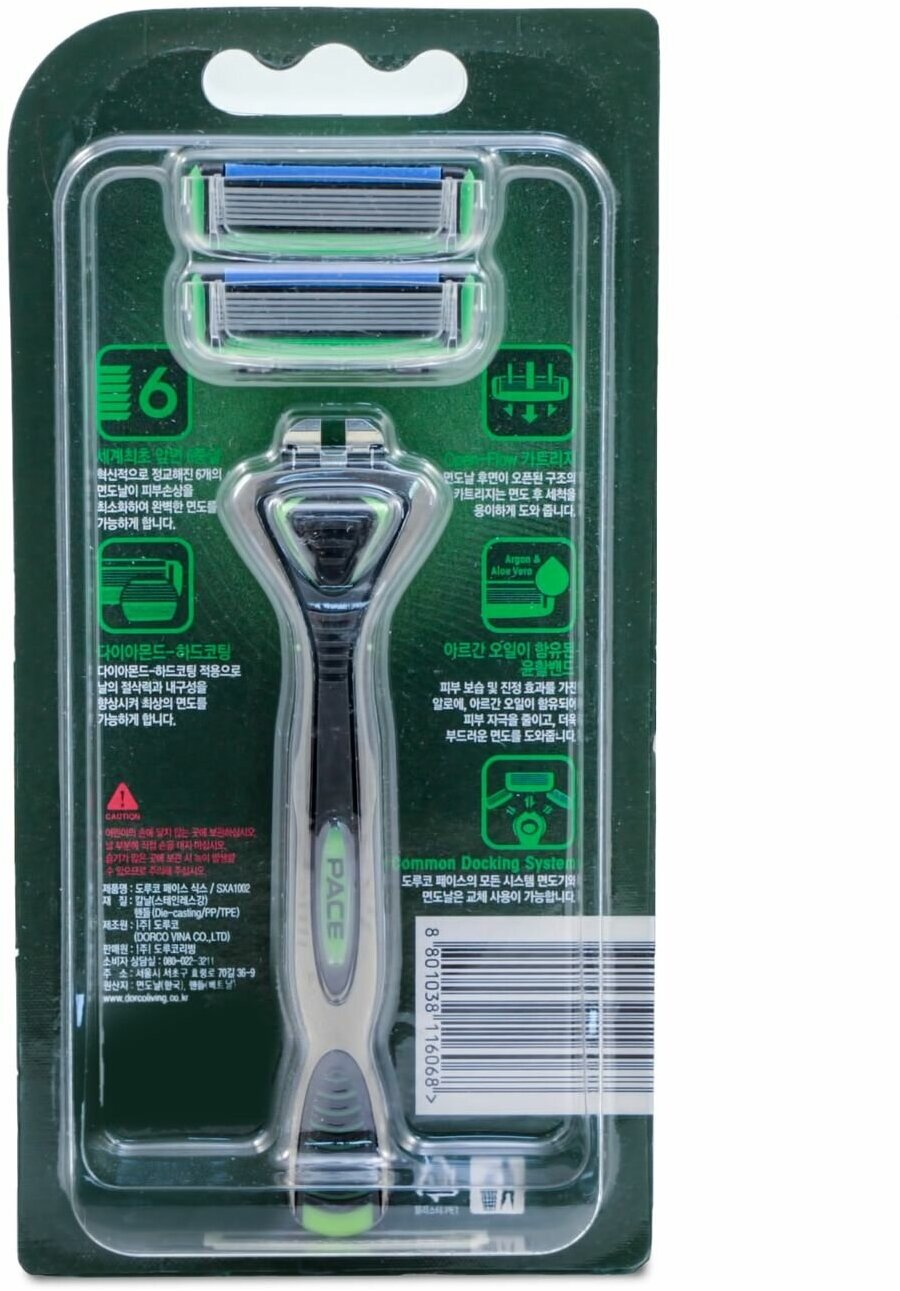 DORCO Мужской станок Pace 6, SXA1002, станок, 2 кассеты, система с 6 лезвиями информация: