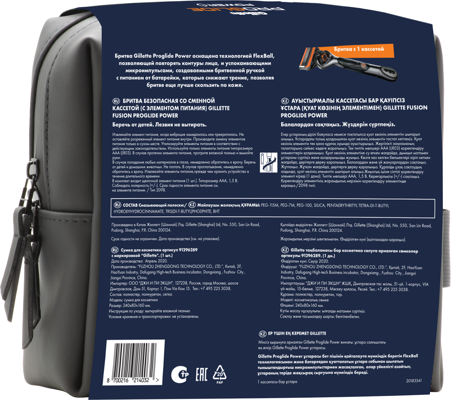 Подарочный набор мужская бритва Gillette Fusion ProGlide Power с 1 сменной кассетой и премиальной косметичкой информация: