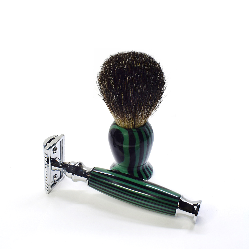 10 цен на Мужской набор для бритья Premium зелено-черный: бритвенный станок, помазок, подставка