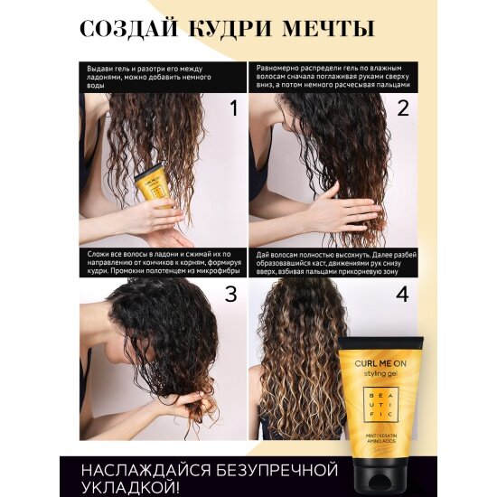 CURL ME ON Гель для укладки кудрявых и волнистых волос средней фиксации, 150 мл, BEAUTIFIC информация: