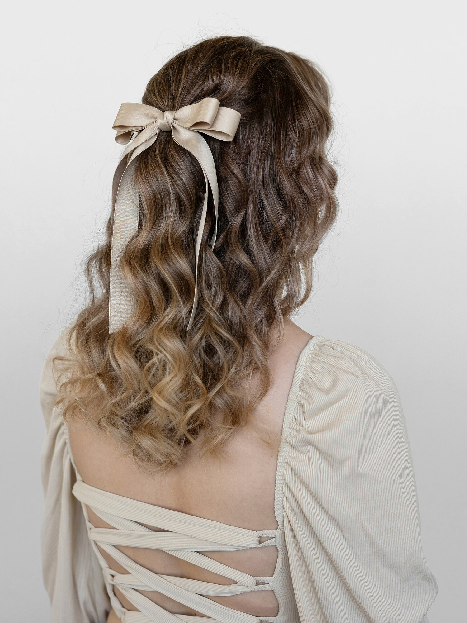 10 цен на Бежевый атласный бант для волос на заколке-автомат для девочек и женщин. Украшения и аксессуары для волос.