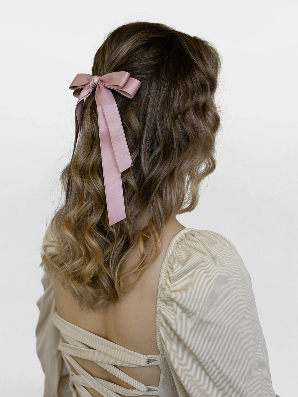 Светло-розовый атласный бант для волос на заколке-автомат для девочек и женщин. Украшения и аксессуары для волос. 509 ₽