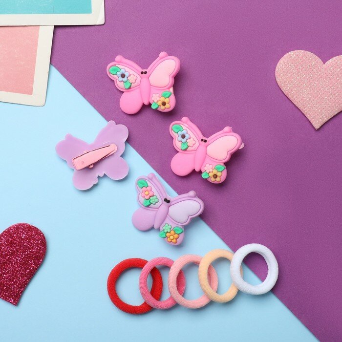 Набор для волос "Лучик" (10 резинок,4 зажима) бабочка яркая, микс информация: