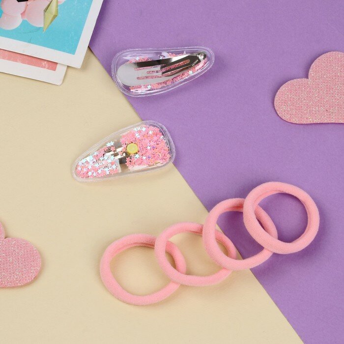 Набор для волос "Ванилька" (4 резинки, 4 невидимки) карамельки, розовый
