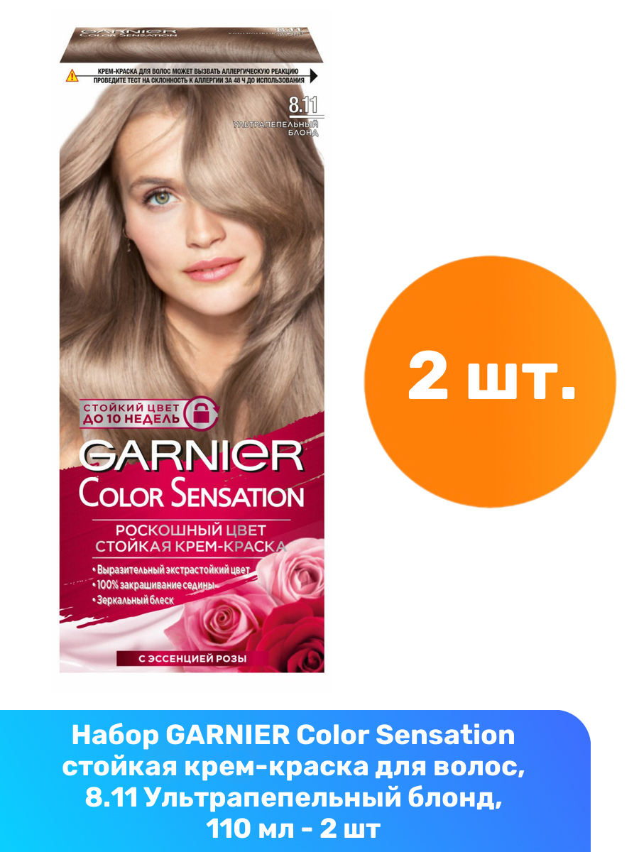 Отзывы на GARNIER Color Sensation стойкая крем-краска для волос, 8.11 Ультрапепельный блонд, 110 мл - 2 шт