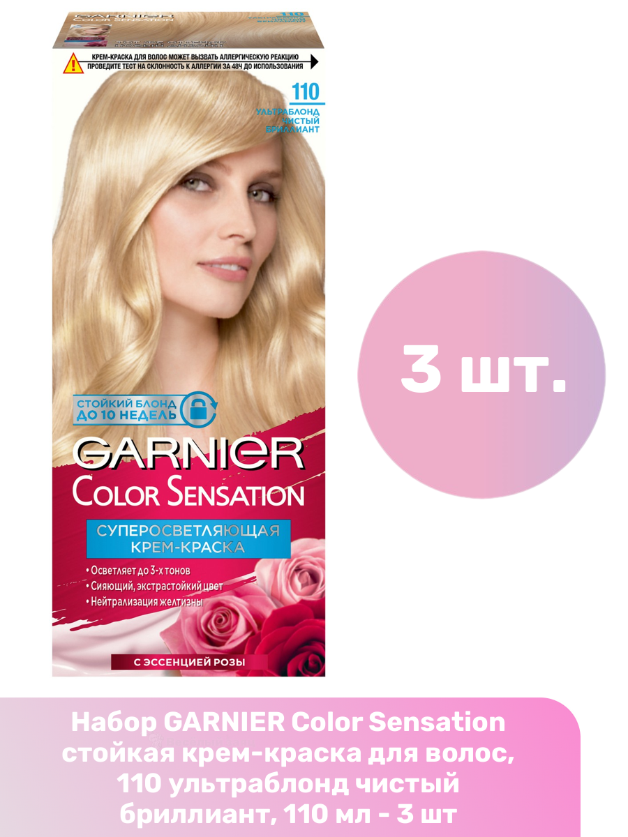 10 цен на GARNIER Color Sensation стойкая крем-краска для волос, 110 ультраблонд чистый бриллиант, 110 мл - 3 шт