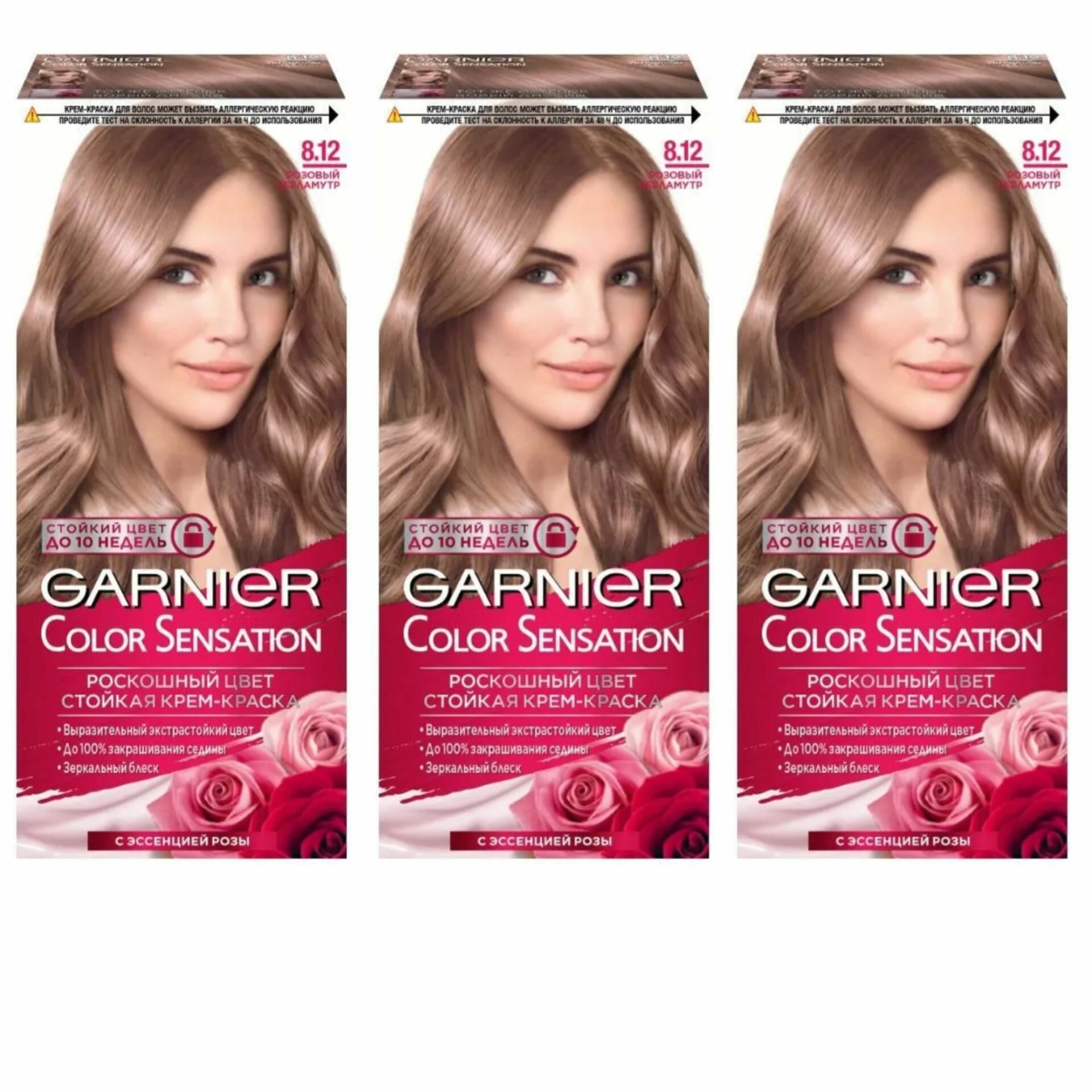 Набор из 3 штук Краска для волос Garnier Color Sensation 8.12 Розовый Перламутр, 110мл 2 254 ₽