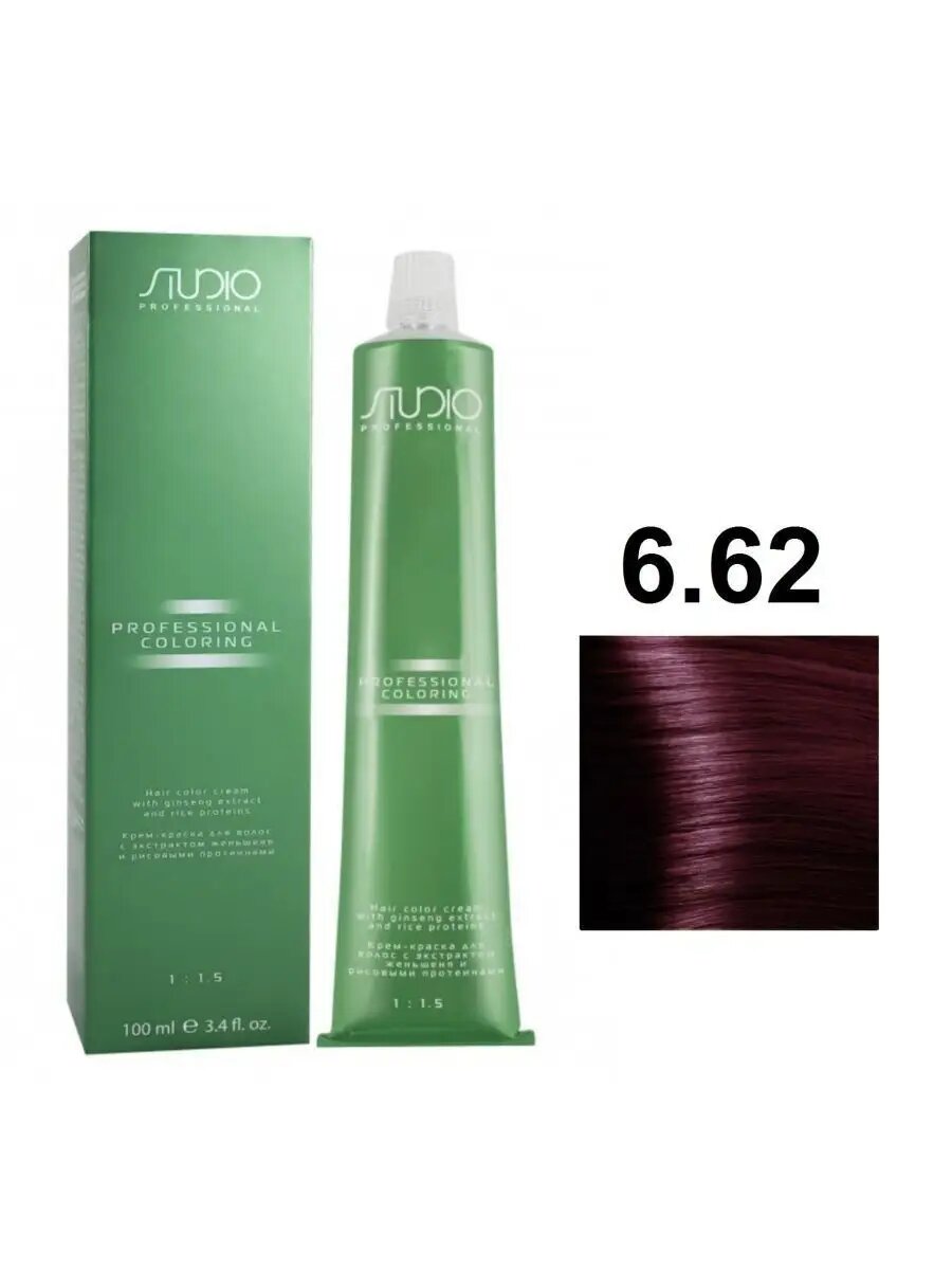 Kapous Studio Professional 6.62 S темный красно-фиолетовый блонд, крем-краска c экстрактом женьшеня и рисовыми протеинами, 100 мл информация: