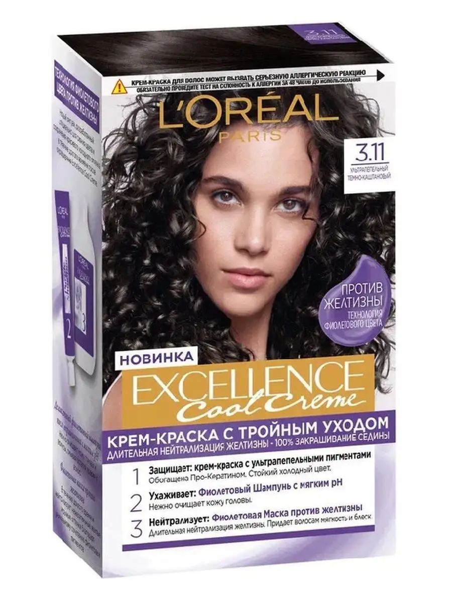 L'Oreal Paris Excellence стойкая крем-краска для волос, 4.11 Ультрапепельный каштановый - 1 шт 1 133 ₽