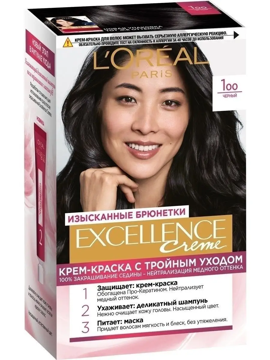 L'Oreal Paris Excellence стойкая крем-краска для волос, 1.00 Черный - 1 шт