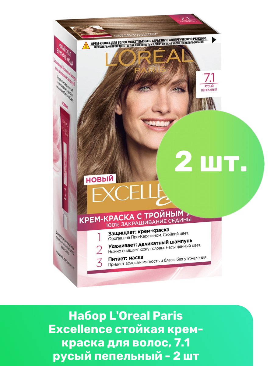 Отзывы на L'Oreal Paris Excellence стойкая крем-краска для волос, 7.1 русый пепельный - 2 шт