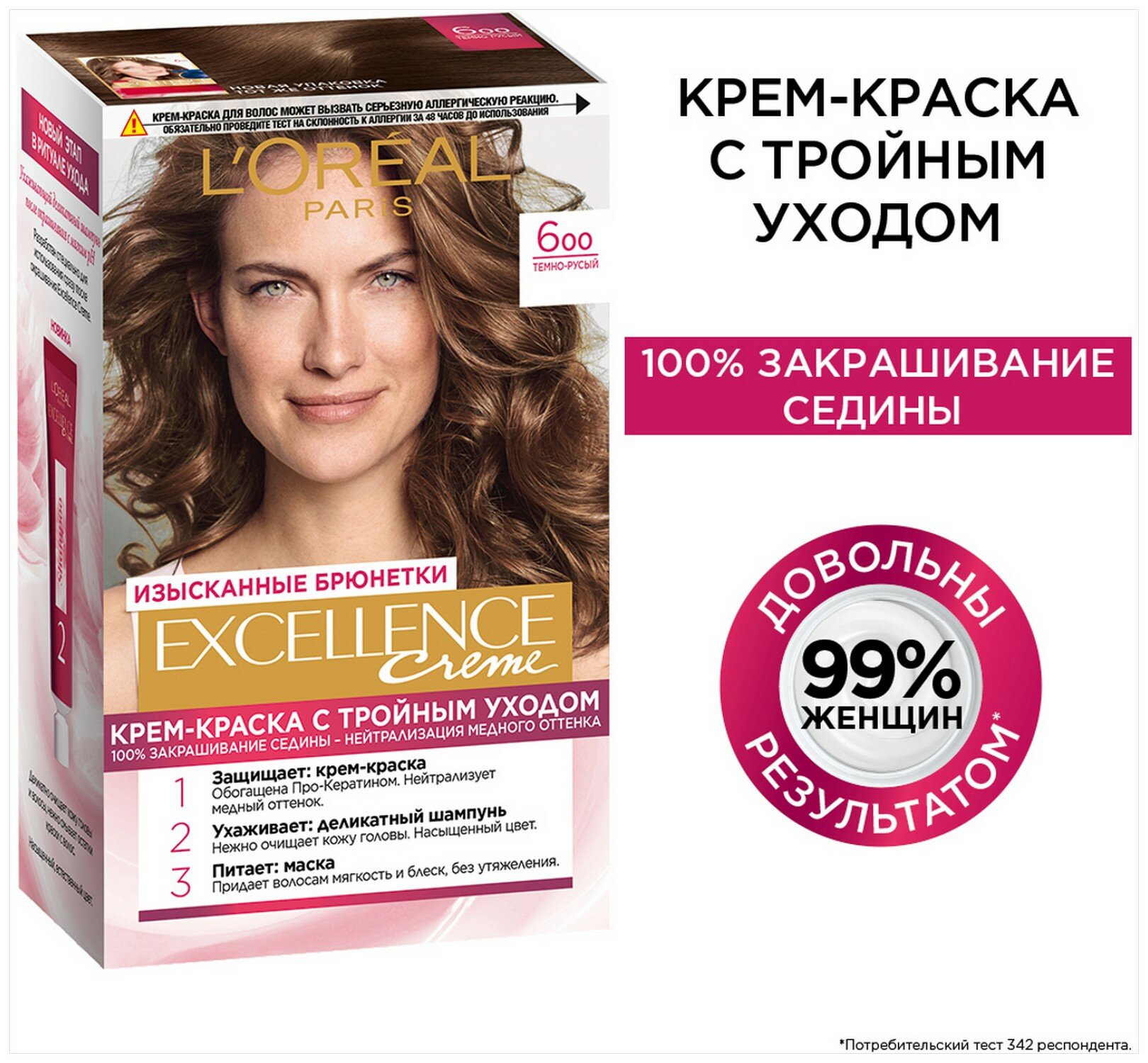 Отзывы на L'Oreal Paris Excellence стойкая крем-краска для волос, 6.00 темно-русый - 6 шт