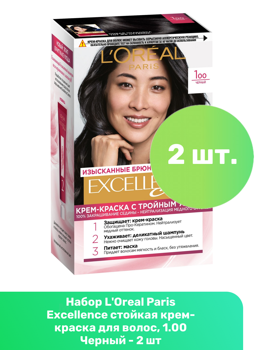 10 цен на L'Oreal Paris Excellence стойкая крем-краска для волос, 1.00 Черный - 2 шт