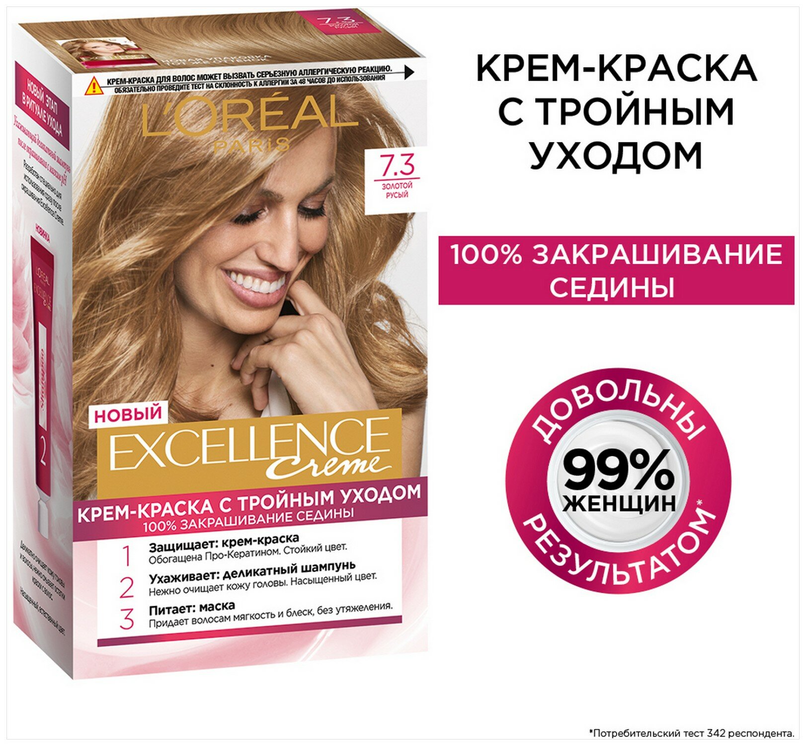 L'Oreal Paris Excellence стойкая крем-краска для волос, 7.3 Золотой русый - 3 шт информация: