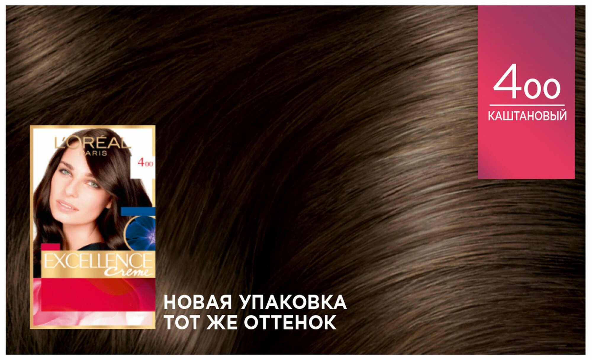 L'Oreal Paris Краска для волос Excellence-Crème, тон №400, Каштановый, 48 мл, н/д
