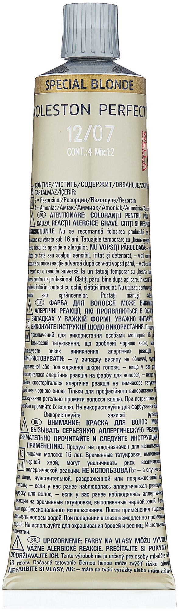 Wella Professionals Koleston Perfect Me+ Special Blonde краска для волос, 12/07 ультраяркий блонд натуральный коричневый, 60 мл