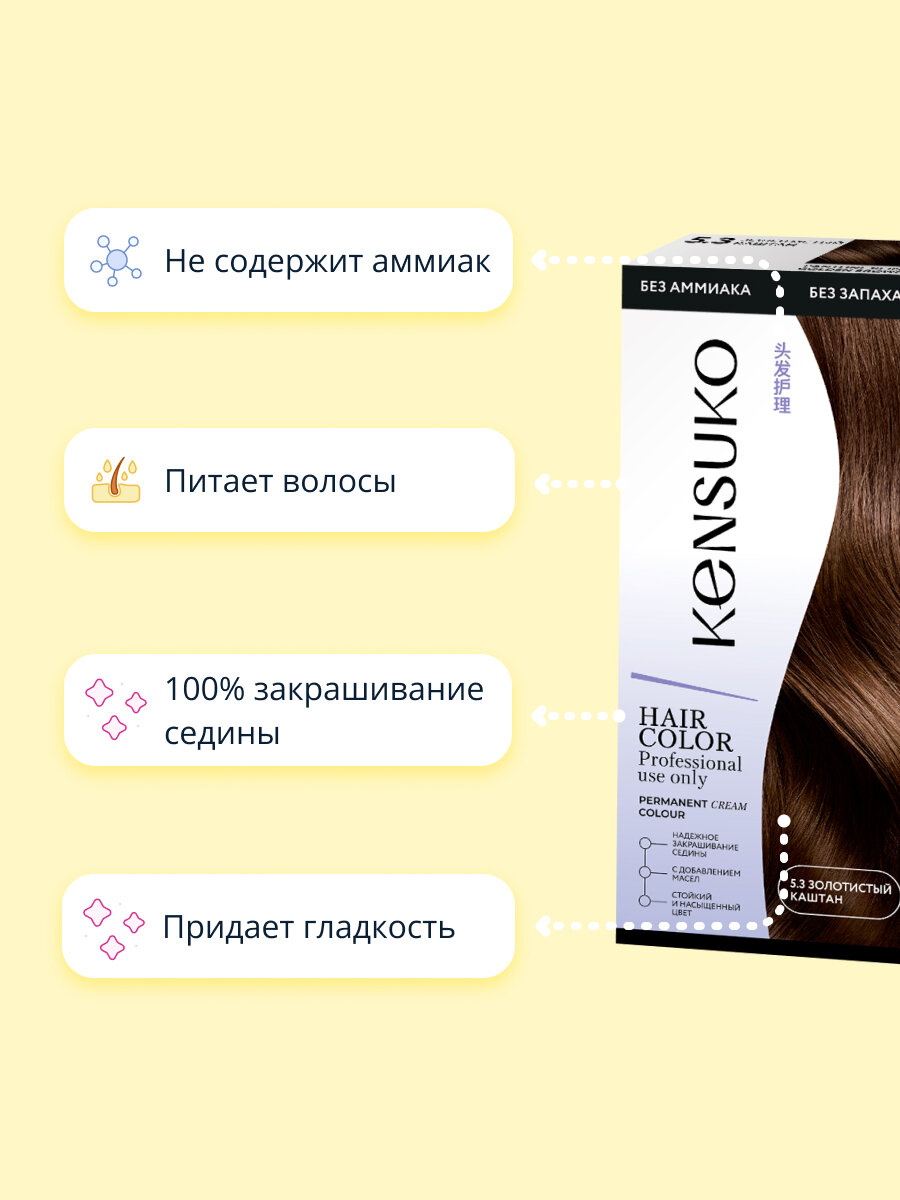 10 цен на Краска для волос KENSUKO Тон 5.3 (Золотистый каштан) 50 мл