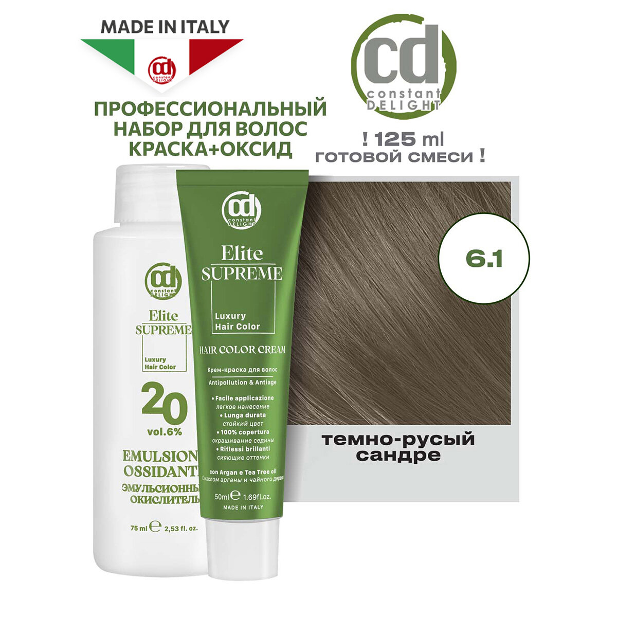 Краска ELITE SUPREME для окрашивания волос CONSTANT DELIGHT 6.1 темно-русый сандре 50+75 мл информация:
